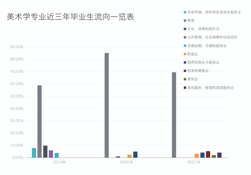 主要面向教育类行业就业,可任职中、小学美术教师;中、高等职业学校美术教师;社会美术培训教师;宣传、文化部门及其它企事业单位美术工作者。