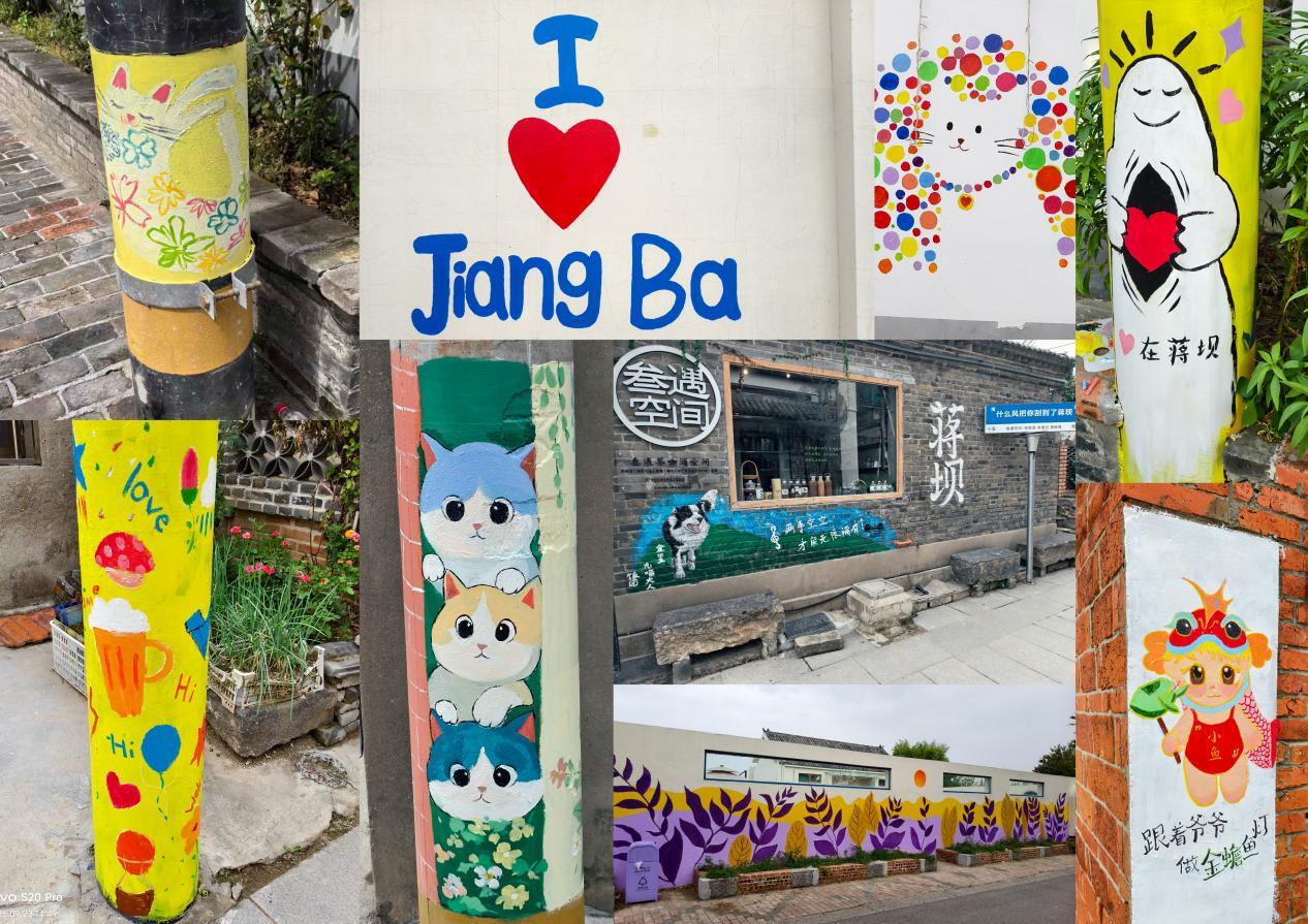 最终,40余幅墙绘作品圆满完成,覆盖面积近100平方米,成为蒋坝古镇乡村风貌的“艺术新名片”。这些作品深度融入蒋坝当地元素,又彰显青春创意与艺术美感,色彩明快鲜活呼应国庆喜庆氛围,画面生动传神仿佛在讲述乡村故事,让原本朴素的墙面变成了“会说话的文化载体”。每当一幅作品完成,周边居民都会驻足观赏、拍照称赞,不少村民感慨:“墙上画的都是我们身边的景、生活的事,看着特别亲切,国庆前村里添了这些画,更有生机、更热闹了!”