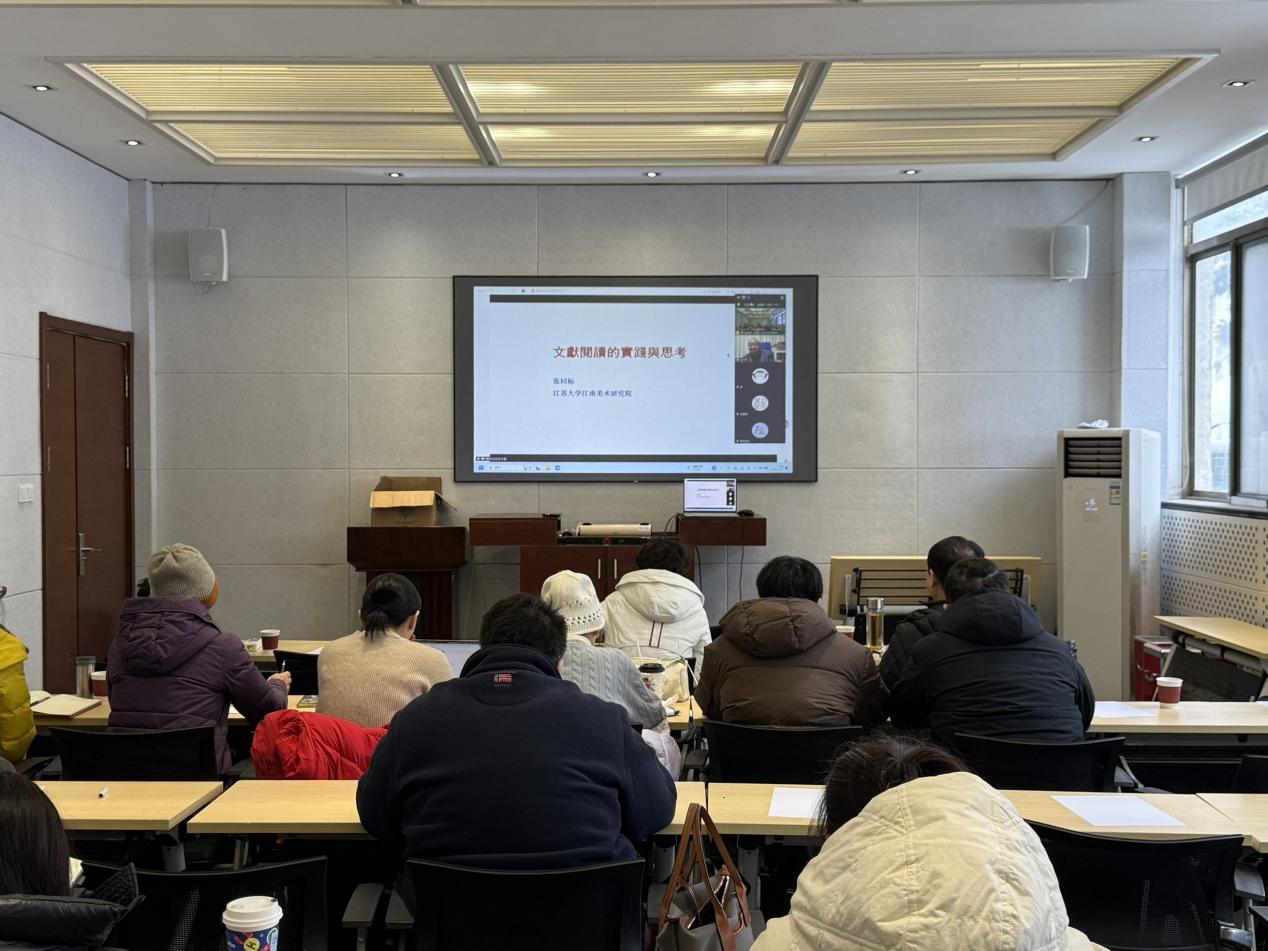 为深入推进学院有组织科研工作,系统提升青年教师学术研究能力与科研素养,1月20日下午,美术学院邀请江苏大学美术学院张同标教授作《文献阅读的实践与思考》专题学术讲座。讲座由美术学院副院长金建荣主持,李文灵院长、杨明副院长以及学院中青年教师参加了本次活动。