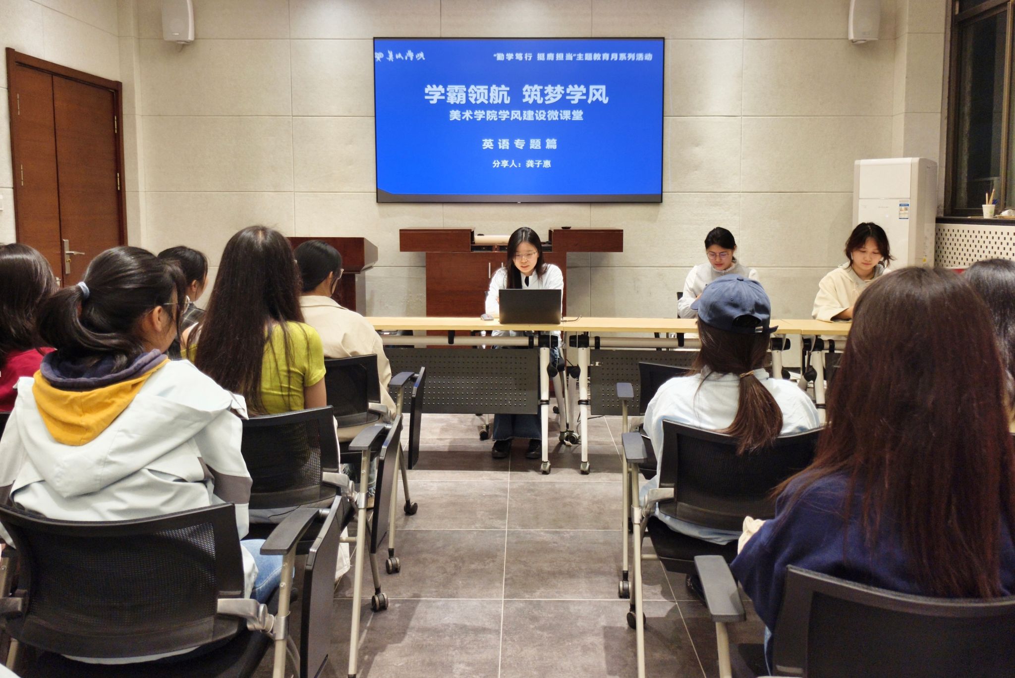 为持续推动主题教育月走深走实、见行见效,从严从细抓实抓牢学风建设提质增效各项工作,4月19日,美术学院精准对接学子英语备考的痛点难点与成长需求,在西辅楼会议室成功举办第二期“学霸领航 筑梦学风”学风建设微课堂活动。本次活动特别邀请了三位在英语学习领域各有专长的优秀学子进行分享交流,其中包括英语竞赛经验颇丰的叶善文、词汇积累扎实深厚的龚子惠以及四六级成绩突出优异的马语悦。三位同学结合自身学习实践,现场分享了英语学习与备考的科学方法及实用经验,助力美术学院英语基础较为薄弱的同学精准提升英语综合应用能力。