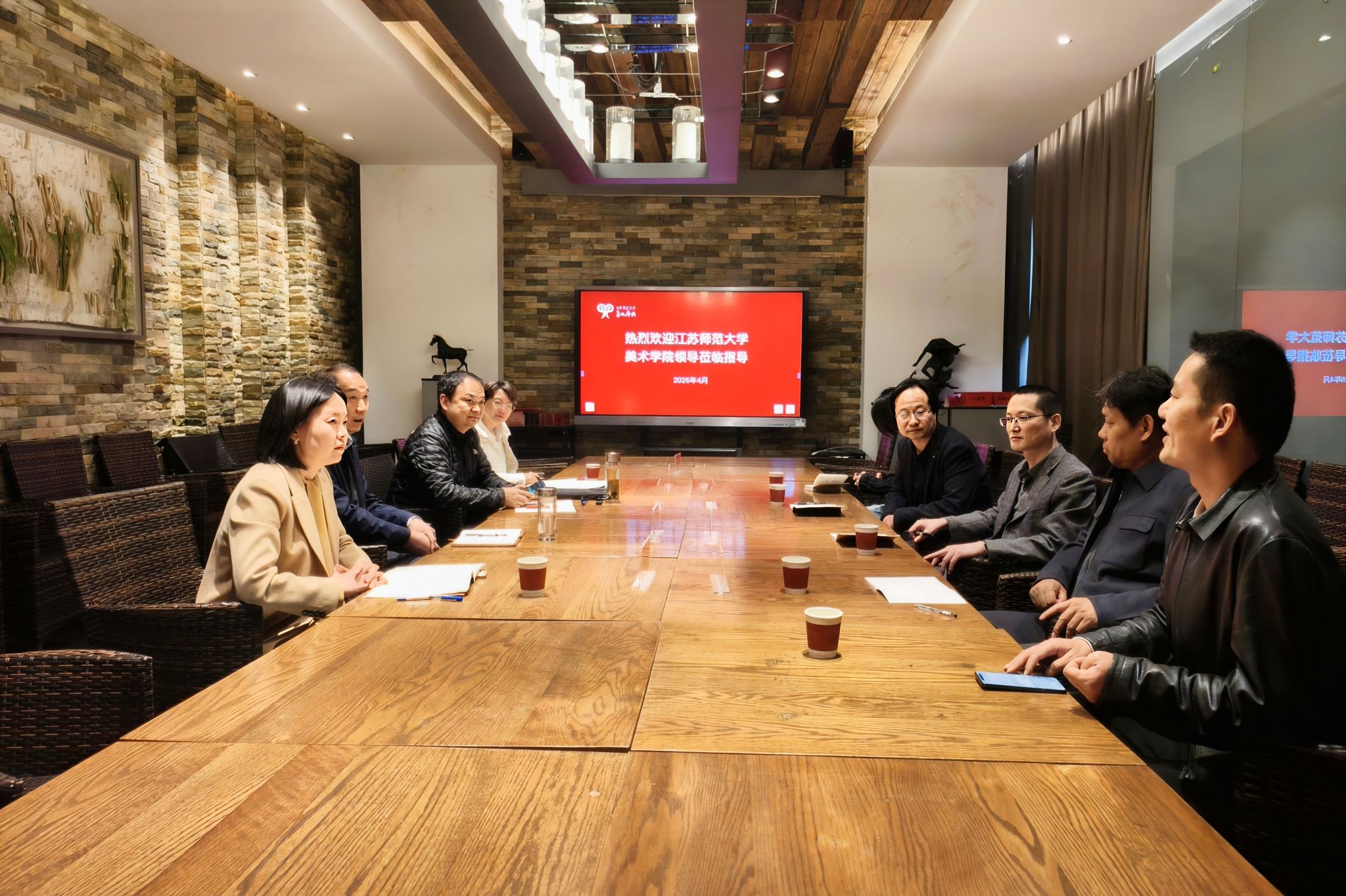 2026年4月23日,江苏师范大学美术学党政班子一行5人莅临我院交流,淮阴师范学院美术学院领导班子在西辅103室接待来宾并召开座谈会。